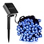 Prachtige Kerstboomverlichting op zonne-energie voor buiten met een lengte van 30 meter in het blauw. Met maar liefst 300 blauwe LED lampjes. Blauw licht geeft een heldere koele kleur en is minder verstorend voor flora en fauna. De kleur van het snoer is donkergroen.
